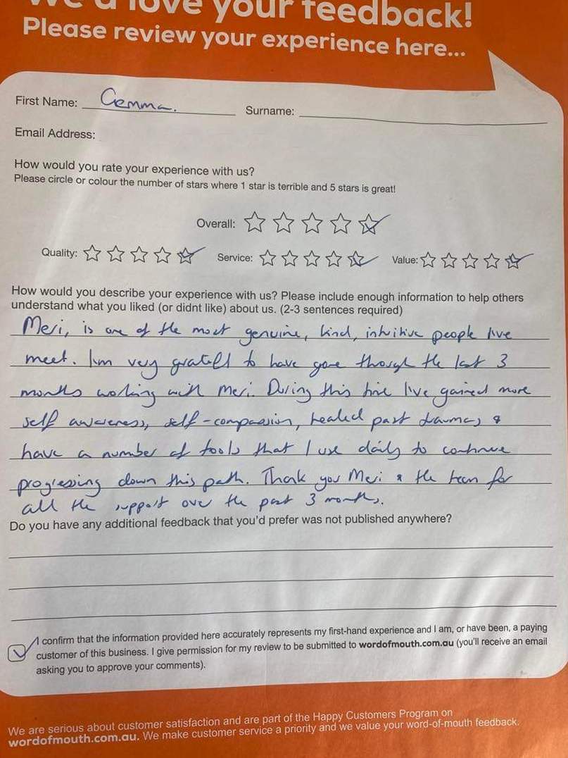 Through the power of hypnotherapy, Meri helps clients permanently change behavioural patterns, enabling them to transform their lives and achieve lasting well-being.