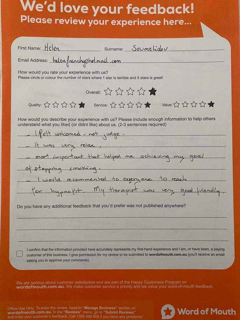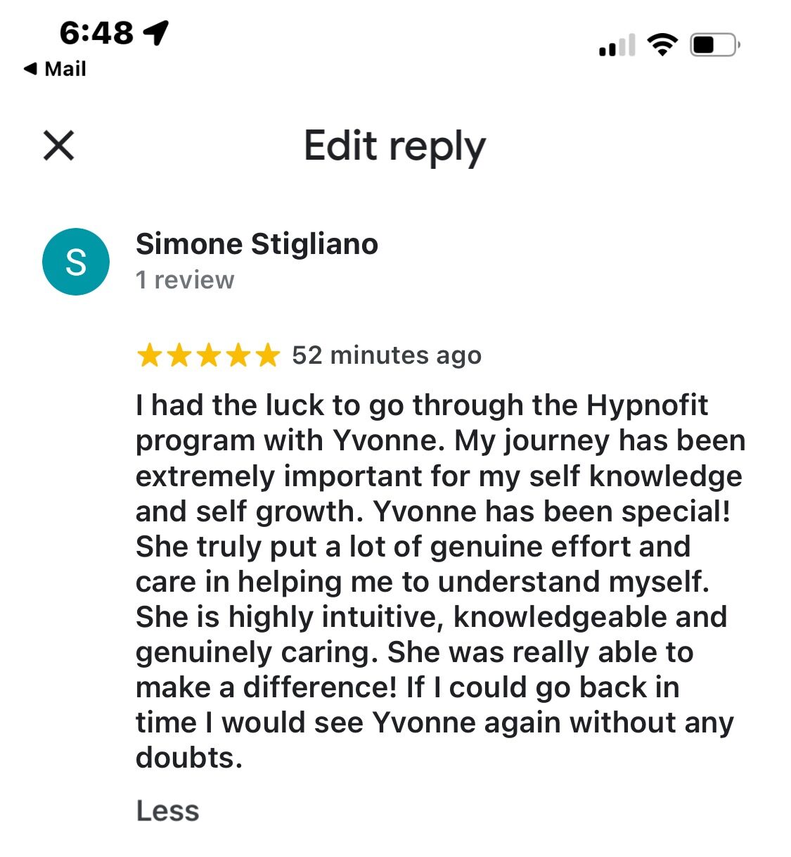 Based on your discussion, she will carefully match you with the most suitable therapist and provide ongoing support—ensuring your HypnoFit® journey is both effective and empowering.